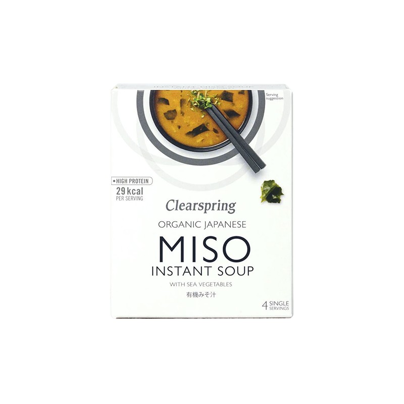 El miso es un condimento tradicional japonés de soja fermentada que da como resultado una sopa rica y saciante. La auténtica sopa de miso orgánica Clearspring, rica en umami, se elabora en Japón sin glutamato monosódico, azúcar añadido ni saborizantes artificiales.