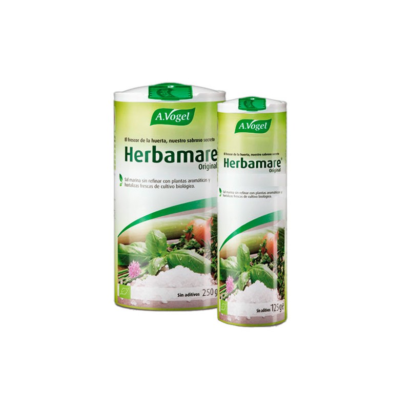 Herbamare® Original es sal marina sin refinar proveniente de La Camarga francesa. Una deliciosa mezcla de plantas aromáticas, hortalizas frescas recién recolectadas y alga marina kelp. Todo de cultivo biológico. ¡El condimento perfecto para tus recetas bio!