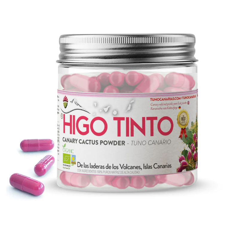 Descubre el increíble Higo Tuno Canario HIGO- TINTO (Opuntia Dillenii), cosechado en los pintorescos barrancos y laderas bajo los volcanes de las Islas Canarias. Este preciado fruto crece en las hojas de los cactus Nopales, que fueron traídos a Canarias desde América hace siglos y se han convertido en una parte integral de la cultura culinaria local. Este tesoro natural es rico en fibra y vitaminas B1, B2, B6, C, así como en minerales como potasio, calcio, magnesio, hierro y zinc, que han sido valorados por la medicina popular canaria y los pueblos indígenas americanos durante cientos de años. Además, su contenido en creatina hace que sea especialmente indicado para deportistas que buscan un impulso adicional en su rendimiento. ¡Descubre los múltiples beneficios de este tesoro natural y disfruta de una experiencia nutritiva única!