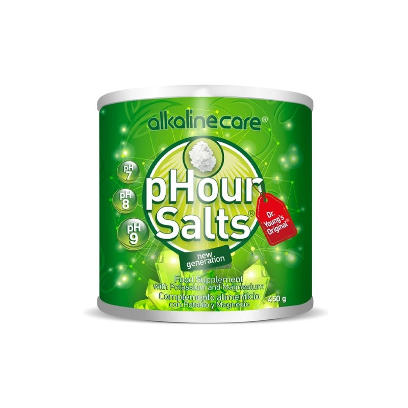 pHour Salts es una combinación única de cuatro potentes sales carbonatadas (bicarbonato de sodio, carbonato de magnesio, bicarbonato de potasio y bicarbonato de calcio), que ayuda a mantener el diseño alcalino del cuerpo humano, plantas y otros organismos vivos.