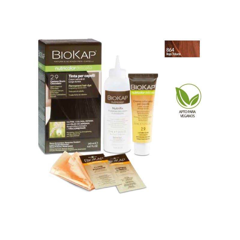 Tinte de pelo biokap nutricolor delicato. Color rojo tiziano