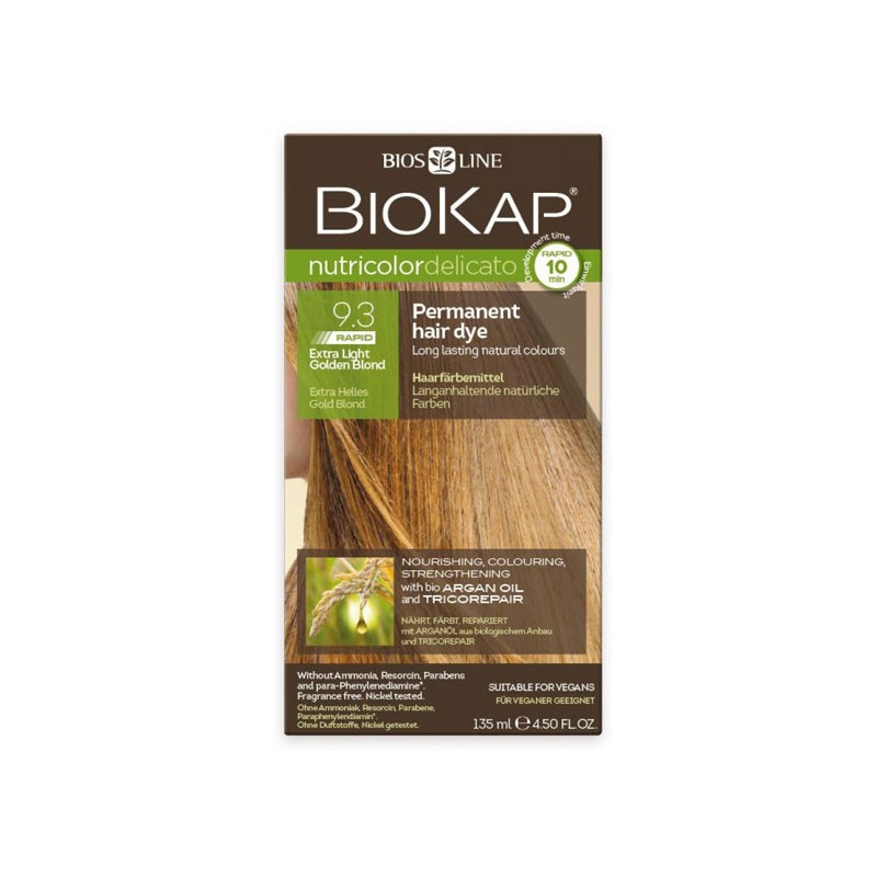 BioKap Nutricolor Tinta Delicato Rapid, con una velocidad de obturación de solo 10 minutos. Ahora disponible en una nueva formulación que reduce el tiempo de aplicación del tinte. BioKap Nutricolor Tinta Delicato Rapid se basa en ingredientes vegetales y una alta tolerabilidad de la piel. Nutre y repara el cabello mientras colorea y cubre perfectamente el cabello blanco.