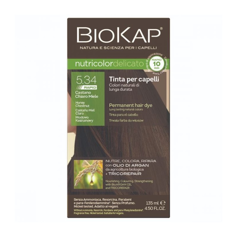 BioKap Nutricolor Tinta Delicato Rapid, con una velocidad de obturación de solo 10 minutos. Ahora disponible en una nueva formulación que reduce el tiempo de aplicación del tinte. BioKap Nutricolor Tinta Delicato Rapid se basa en ingredientes vegetales y una alta tolerabilidad de la piel. Nutre y repara el cabello mientras colorea y cubre perfectamente el cabello blanco.