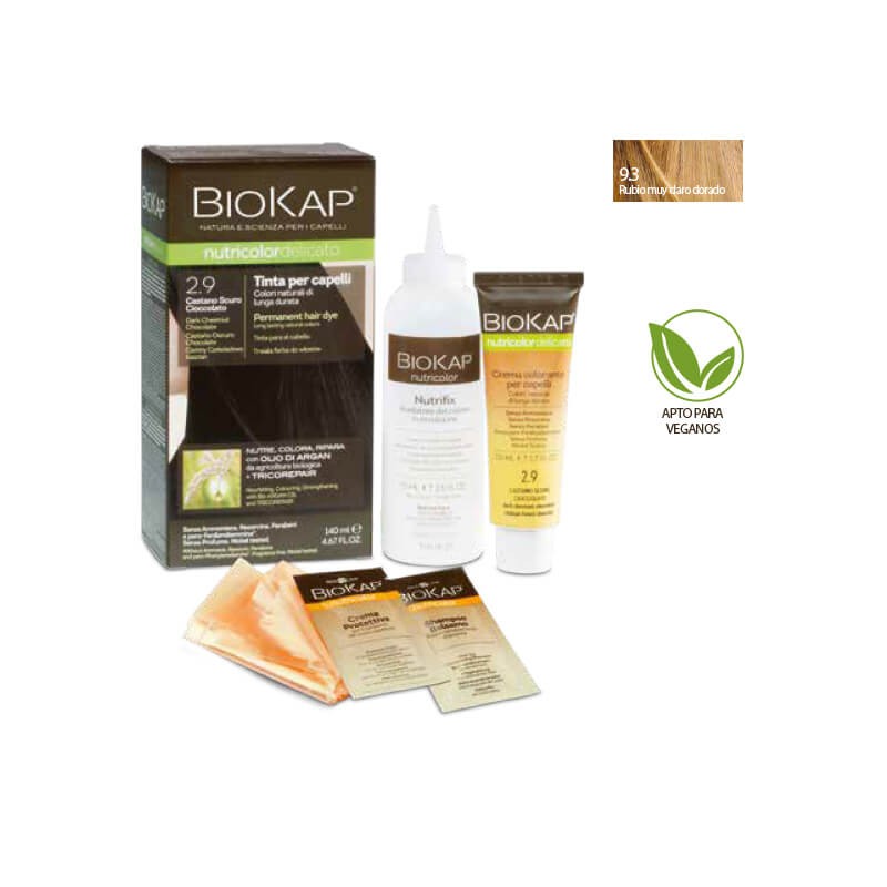 Tinte de pelo biokap nutricolor delicato. Color rubio muy claro dorado