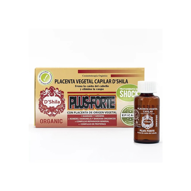 Tratamiento de shock D'Shila plus forte con placenta vegetal capilar para frenar la caída del cabello. También es un potente eliminador de caspa.