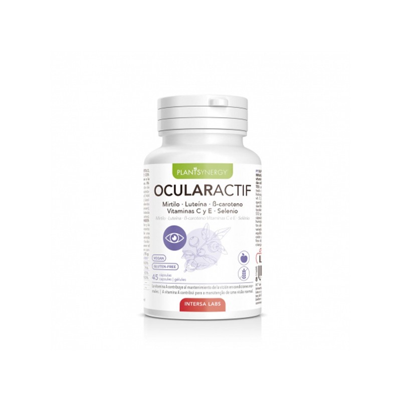 Mirtilo, Luteína, ß-caroteno, Vitaminas C y E, Selenio.Composición de Ocular Actif 45 cápsulas