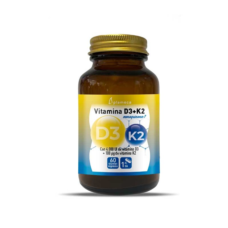 - VITAMINA K2: La vitamina K2 contribuye a la coagulación sanguínea normal. Las vitaminas D y K contribuyen al mantenimiento de los huesos en condiciones normales. Esta fórmula aporta la dosis máxima diaria de vitamina D3 (4000 UI) y un 133% del VRN de vitamina K2 en la forma con mayor biodisponibilidad y mayor permanencia en el torrente sanguíneo, la menaquinona-7.