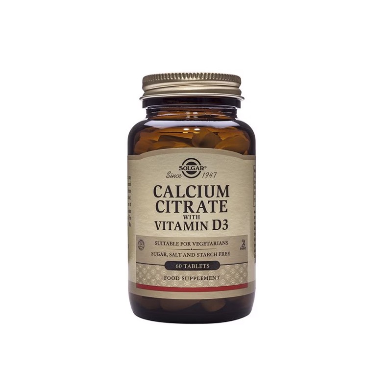 Solgar® ha desarrollado la Fórmula de Citrato de Calcio con Vitamina D3 para el cuidado de la salud ósea. La absorción y fijación de calcio en el hueso requiere de vitamina D, una vitamina liposoluble. Esta fórmula combina ambos compuestos para un mejor resultado. El calcio es el mineral más abundante en el organismo y se almacena principalmente en los huesos. Es necesario para un buen mantenimiento de huesos y dientes. Con la edad la absorción de calcio puede reducirse, de forma que es importante asegurarse una ingesta adecuada de calcio en la dieta, consumiendo lácteos como leche, yogur y queso. El aporte de un nivel de calcio adecuado como parte de una dieta sana y equilibrada, junto con actividad física, puede reducir los problemas relacionados con los huesos en la vejez. En este producto, el calcio se presenta en forma de citrato, una forma mineral de más fácil absorción que otras formas de calcio empleadas habitualmente. La vitamina D3 es una forma de la vitamina D que el organismo puede utilizar con facilidad y que contribuye a la absorción del calcio y el mantenimiento de sus niveles en sangre. Los beneficios de la que se conoce como “vitamina del sol” son muchos y están bien documentados, principalmente para el mantenimiento de huesos y dientes y para el funcionamiento del sistema inmunitario. Además, tanto el calcio como la vitamina D ayudan a la función muscular.