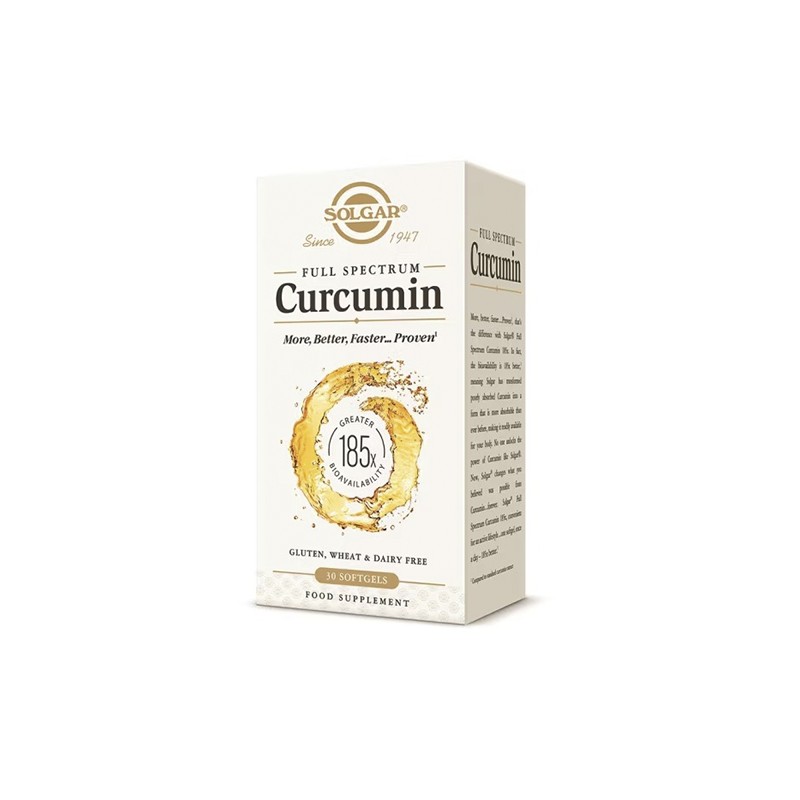 Full Spectrum Cúrcuma de Solgar contiene una forma solubilizada de extracto de cúrcuma de mayor biodisponibilidad que otros extractos de cúrcuma tradicionales.