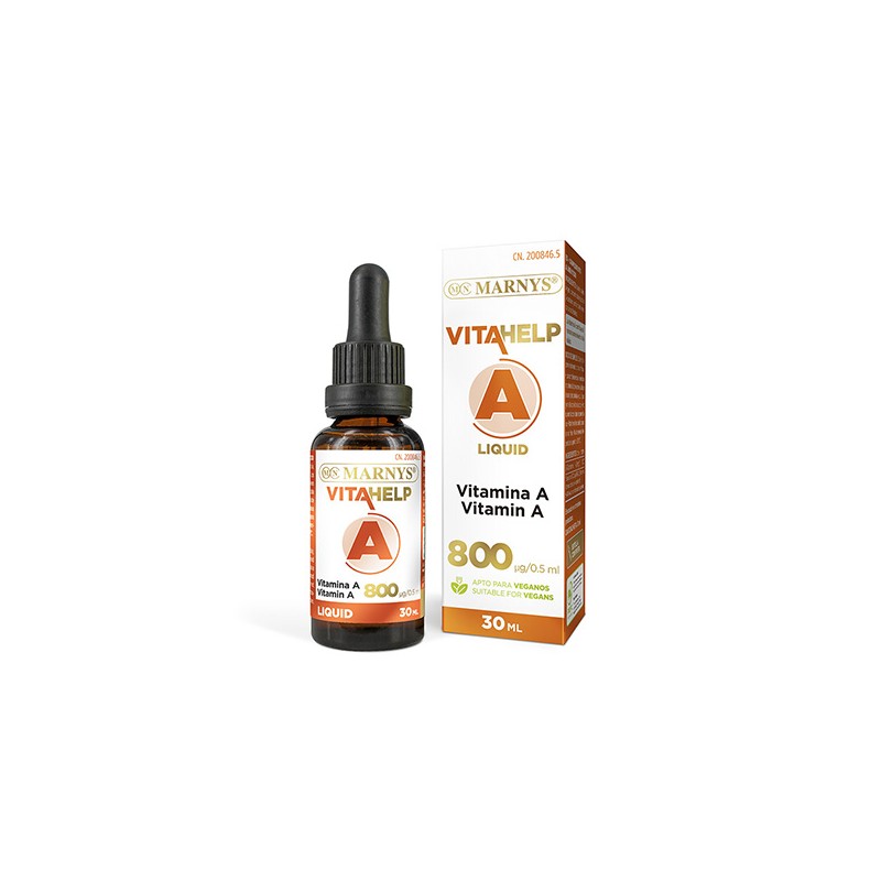 Vitamina A líquida, a partir de Beta-caroteno, en una base de aceite de oliva virgen extra.