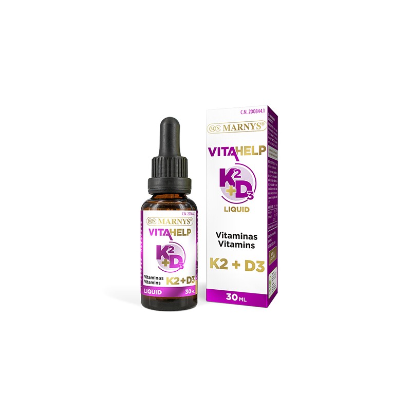 MARNYS® Vitamina K2&D3 en formato líquido de alta calidad certificada que además permite la liberación rápida del principio activo y su absorción en el organismo. Las vitaminas K2 y D3 favorecen el mantenimiento óseo y la coagulación sanguínea.